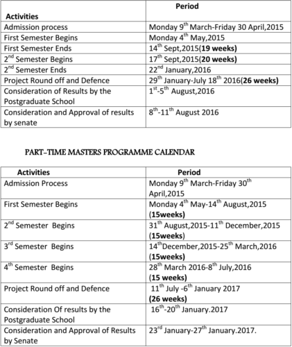 ABUAD 2014/2015 Postgraduate Academic Calendar
