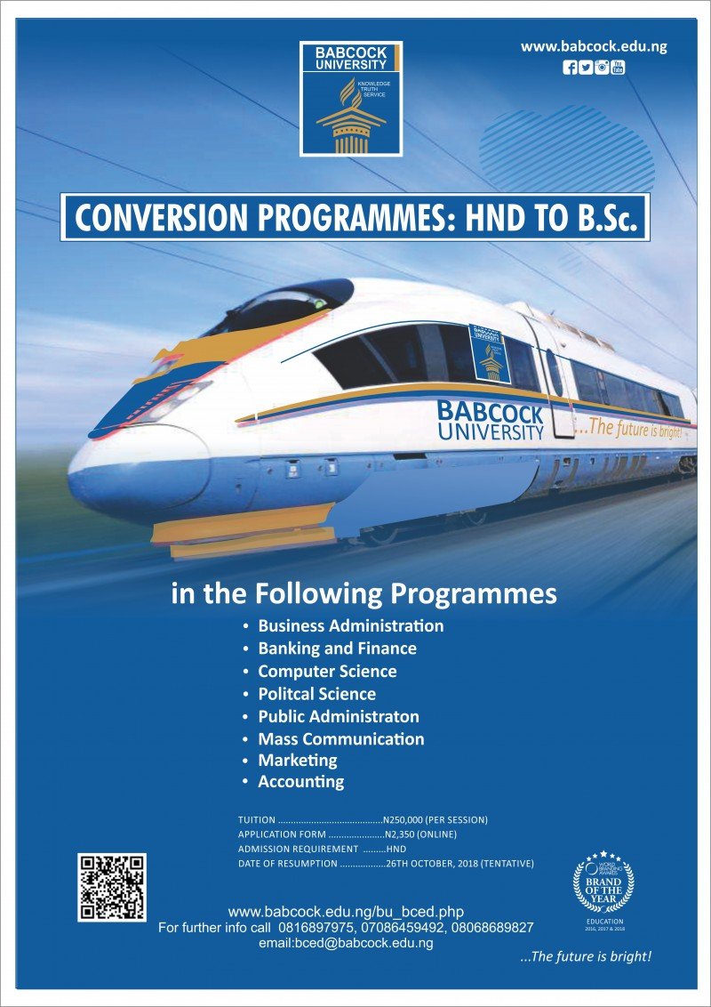 Babcock University HND to B.Sc Conversion Admission Form is out for the 2018/2019 academic session. The university is currenrtly selling the application form for admission into its conversion programmes (HND to B.Sc). Interested members of the public are hereby informed.