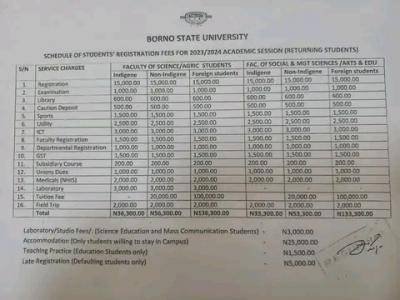 BOSU School Fees: The management of Borno State University (BOSU) has published the school fees schedule for the 2023/2024 academic session.
