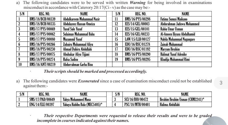 A statement signed by the Director, Examinations, Admissions and Records (DEAR), Amina Umar Abdullahi, said their expulsion followed a report submitted by the Senate Committee on Entry Qualification Irregularities and deliberated upon.