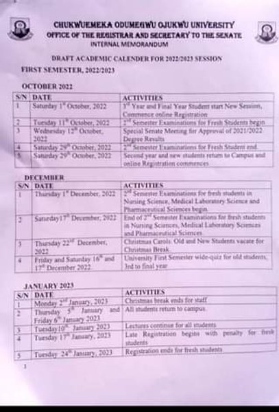 COOU Academic Calendar: The school authorities of the Chukwuemeka Odumegwu Ojukwu University (COOU) has released the academic calendar for the 2022/2023 academic session.