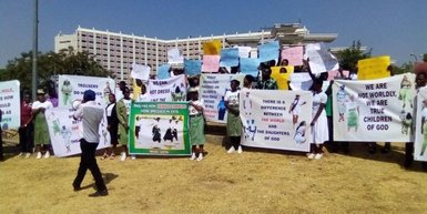 However, some men were also seen on the scene during the protest. According to reports, the leader of the group Udochi Emmanuel stated that NYSC authorities are breaching their fundamental human rights under Section 38(1) of the constitution of the Federal Republic of Nigeria for harassing female Corps Member in skirts.