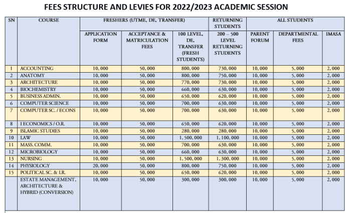 This is to inform all students of Crescent University that, the institution’s management has released the school fees payable for the 2022/2023 academic session.