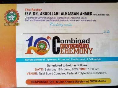 Fed Poly Nasarawa 10th combined convocation ceremony has been announced for all its graduating and graduated students. See details below.