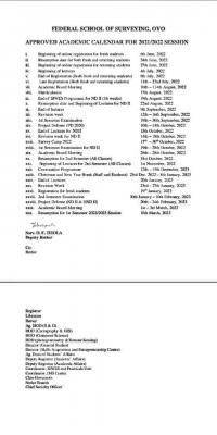 The Federal School of Surveying (FSS), Oyo academic calendar has been published for the 2021/2022 academic session.
