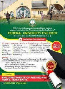 Applications are hereby invited from suitably qualified candidates for admission into the Federal University Oye-Ekiti, Pre-Degree Programme for the 2023/2024 Academic Session.