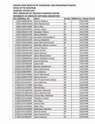 Katsina State Institute of Technology and Management (KSITM) Admission List, 2022/2023 | Merit Batch