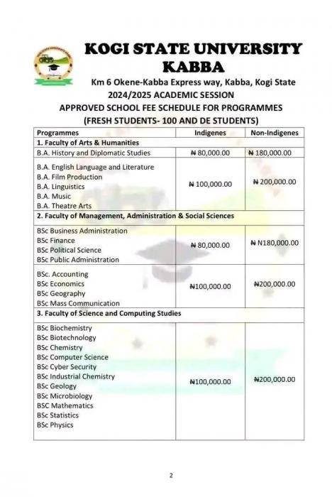 KSU School Fees: This is to inform the general public especially students of the Kogi State University, Kabba that the school management has released the approved school fees schedule for the 2024/2025 academic session.