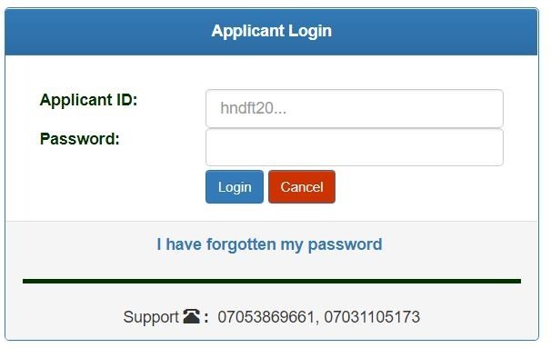 - Enter your applicants ID and Password in the spaces provided to login.