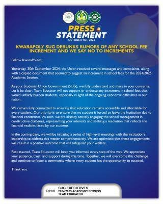 Yesterday, 30th September 2024, the Union received several messages and complaints, along with a copied document that seemed to suggest an increment in school fees for the 2024/2025 Academic Session.