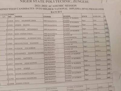 Niger State Poly HND Admission List, 2021/2022 | 1st, 2nd, 3rd, 4th, 5th Batch