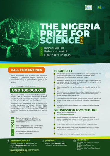 This annual prize for science was instituted in 2004 by Nigeria LNG to recognise outstanding scientific achievements by scientists and innovators in line with its vision of helping to build a better Nigeria.