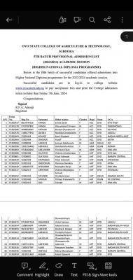 Successful candidates are to log-in to college website www.ovscatech.edu.ng to pay acceptance fees and print the College admission letter not later than Friday, 7th June, 2024.