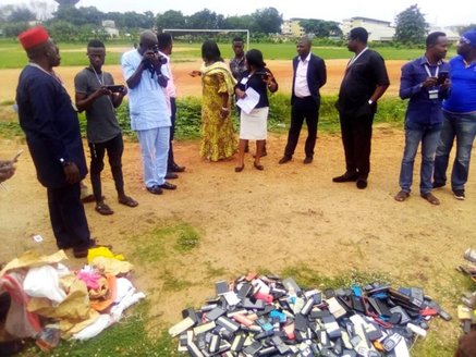 Exam Malpractice: Poly Ibadan Burns Phones worth Millions of Naira (See Photos)
