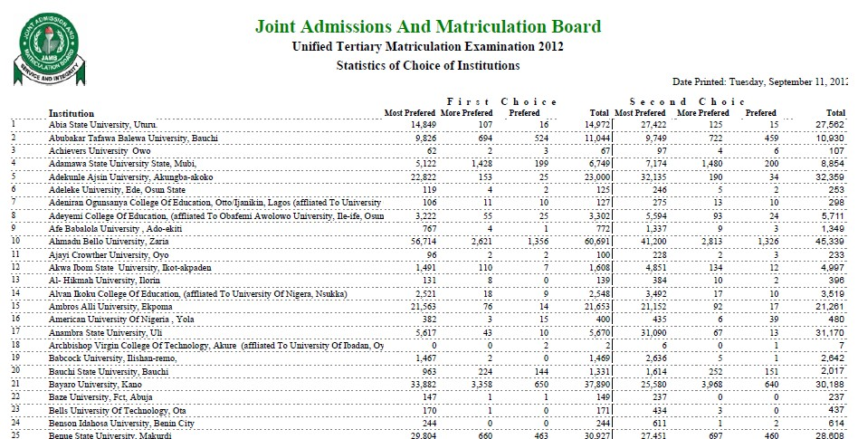 Or get involved in examination malpractice to save them some shame, time, and money? The truth is that, these questions can only be answered correctly by those candidates not awarded admission and nobody else, not even me; I just help with the process of answering these questions. Ok, that is not all; let us still see more analysis from the 2012 admission process.