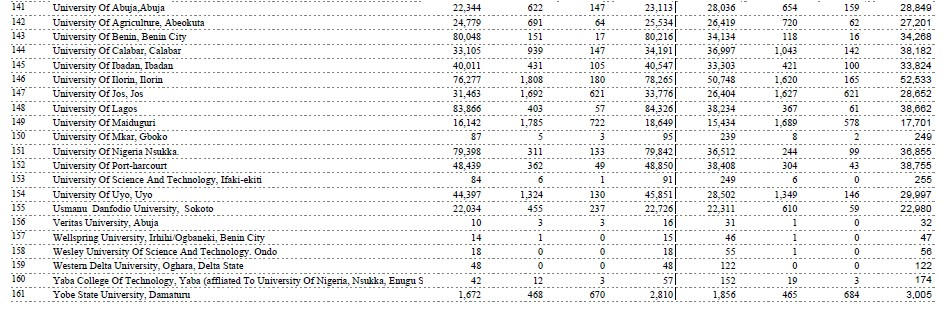 From the images above, you can see clearly the institutions with the highest competition. What I mean by competition here, is the amount of applicants for a particular institution. Now, you can use the data presented above to decide on the institutions to apply to.