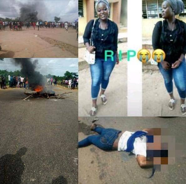 The deceased who was identifies as Kofoworola Kuku Toheebah was reportedly going to the campus on a bike, it was said that she accidentally fell off from the bike, upon recovering from the accident, a trailer crushed her on the spot.