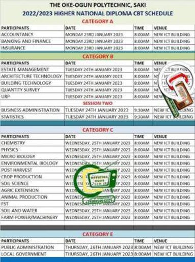 This is to inform the general public that the Oke Ogun Polytechnic Saki HND Pre-admission CBT and screening exercise will hold between Monday 23th January and Thursday, January 26th, 2023.