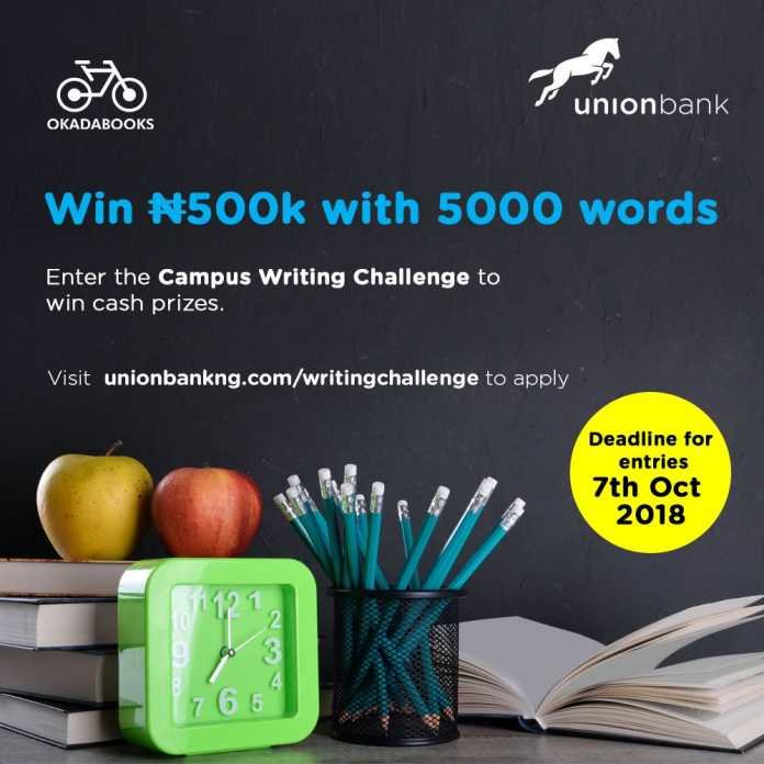The Union Bank Campus Writing Challenge is an OkadaBooks initiative sponsored by Union Bank.The contest is focused on discovering young, raw and bold writing talents across Nigeria and giving them with the necessary support to hone their craft and become master storytellers.Contestants also stand a chance to get publishing deals as select entries will be shared with top publishers in Nigeria including Farafina and Narrative Landscape.
