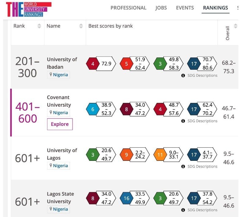 Latest: UI Tops Nigeria Universities Ranking and Among the Best 500 Universities Globally Six (6) Nigerian universities have made it to the Times Higher Education (THE) World University Ranking for 2021. The universities include the University of Ibadan (UI), Lagos State University (LASU), University of Lagos (UNILAG), Covenant University, University of Nigeria Nsukka (UNN), Obafemi …