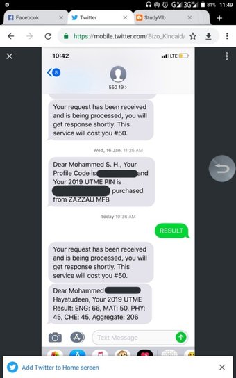 - You will get a response with your 2019 JAMB Results.
