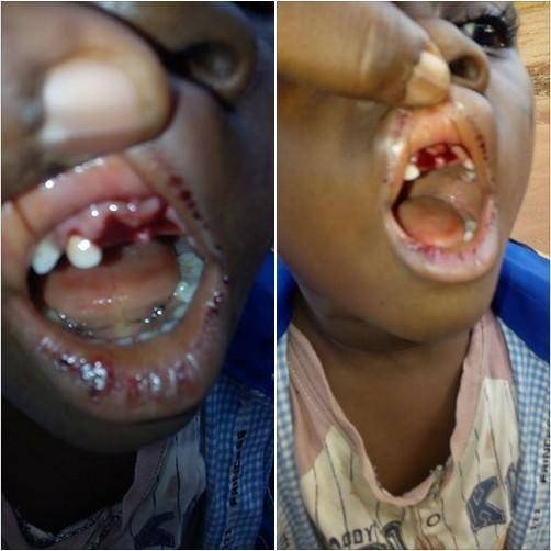 As seen on the screen shot, the boy almost lost all of his front upper teeth. What could have made the teacher to behave in such an unproffessional manner is yet to be acertained.